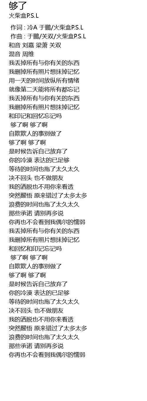 | [02:11.43] | 够了啊 够了啊 |