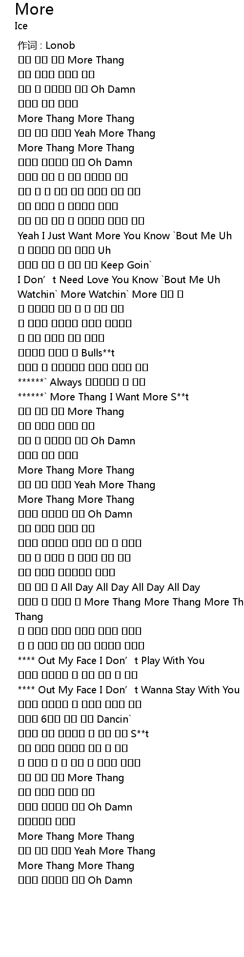 | [01:31.113] | ******` More Thang I Want More S**t |