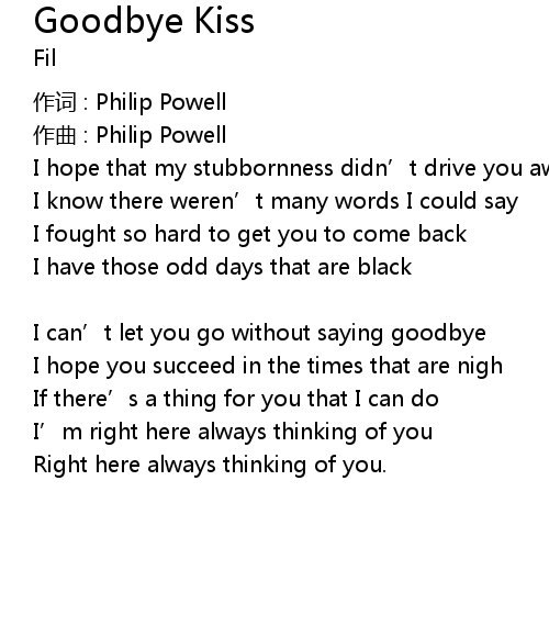 | Song | Goodbye Kiss |