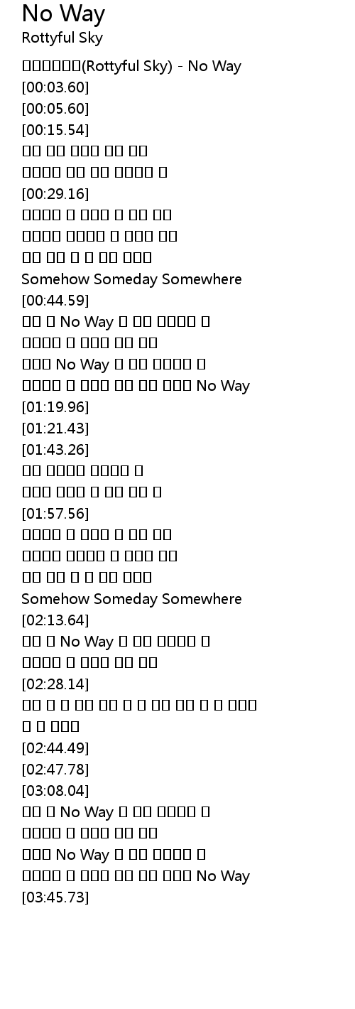 | [00:00.20] | 로티플스카이(Rottyful Sky) - No Way |