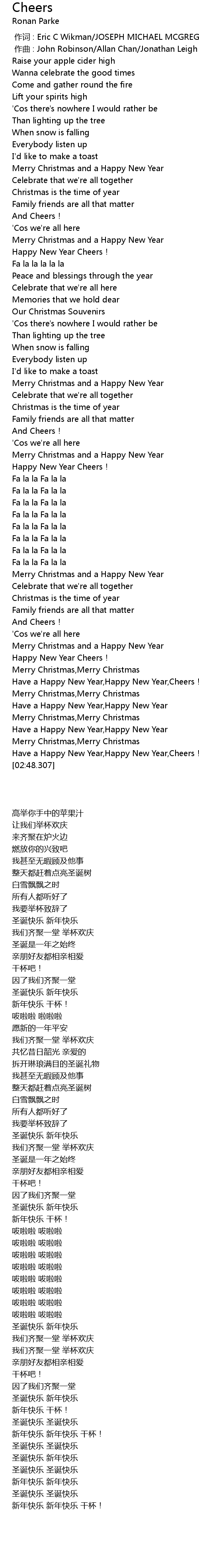 | [02:44.135] | Have a Happy New Year, Happy New Year, Cheers! |