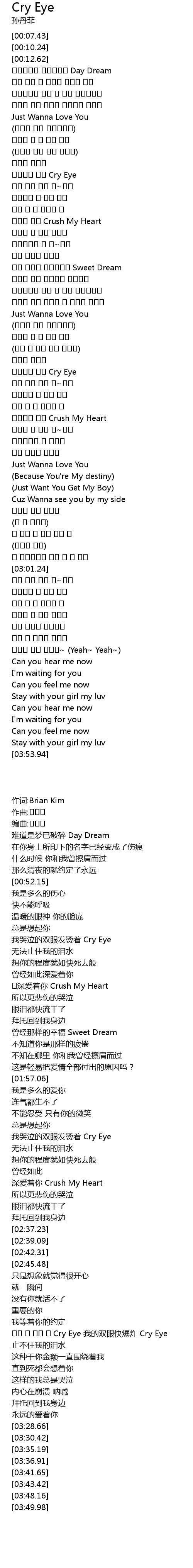 | [02:08.88] | 뜨거워진 나의 Cry Eye |
