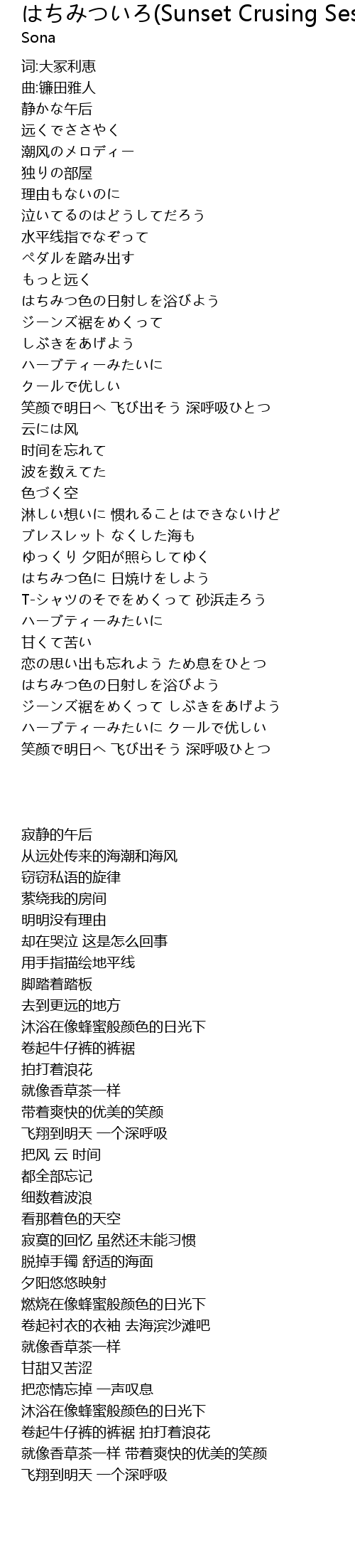 | [02:42.000] | はちみつ色に 日焼けをしよう |