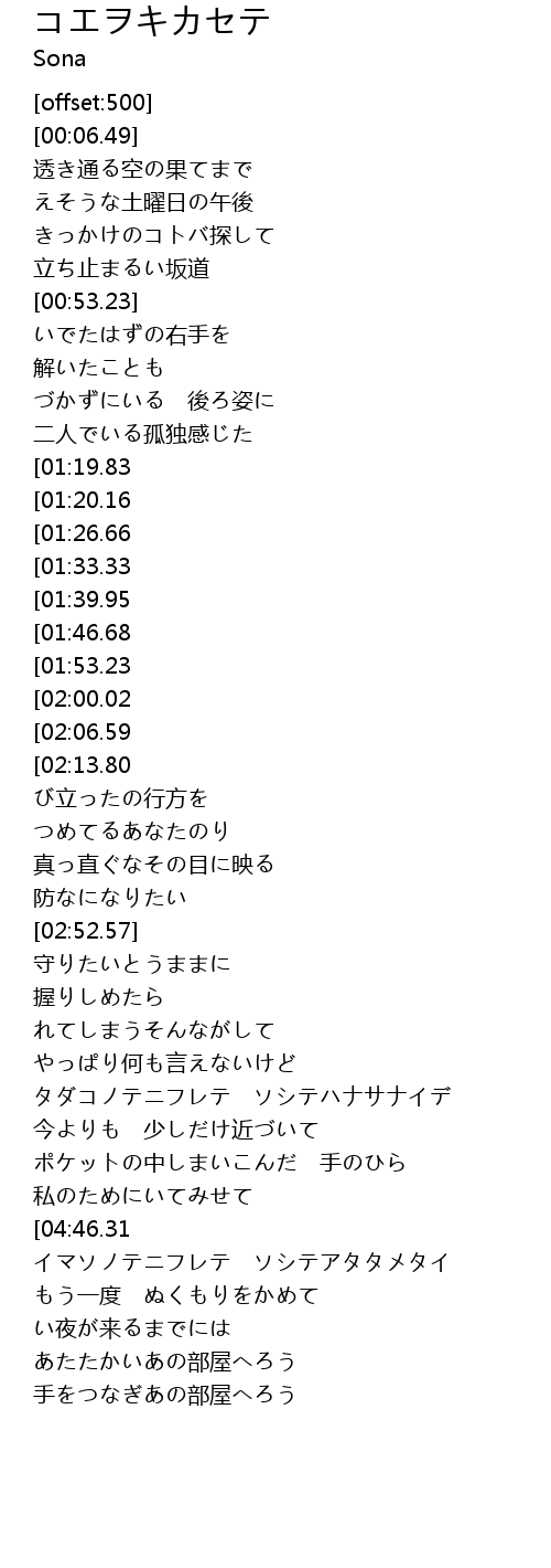 コノコエニキヅイテ ミミヲスマセテミテ |