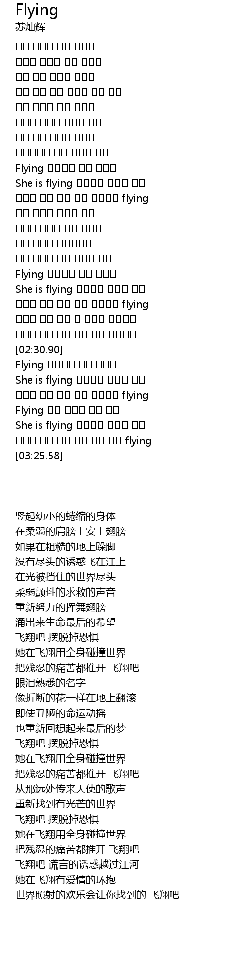 | [02:51.95] | She is flying 온몸으로 부딪쳐 세상 |