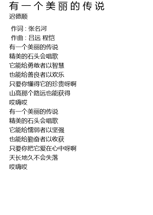 | [00:17.331] | 有一个美丽的传说 |
