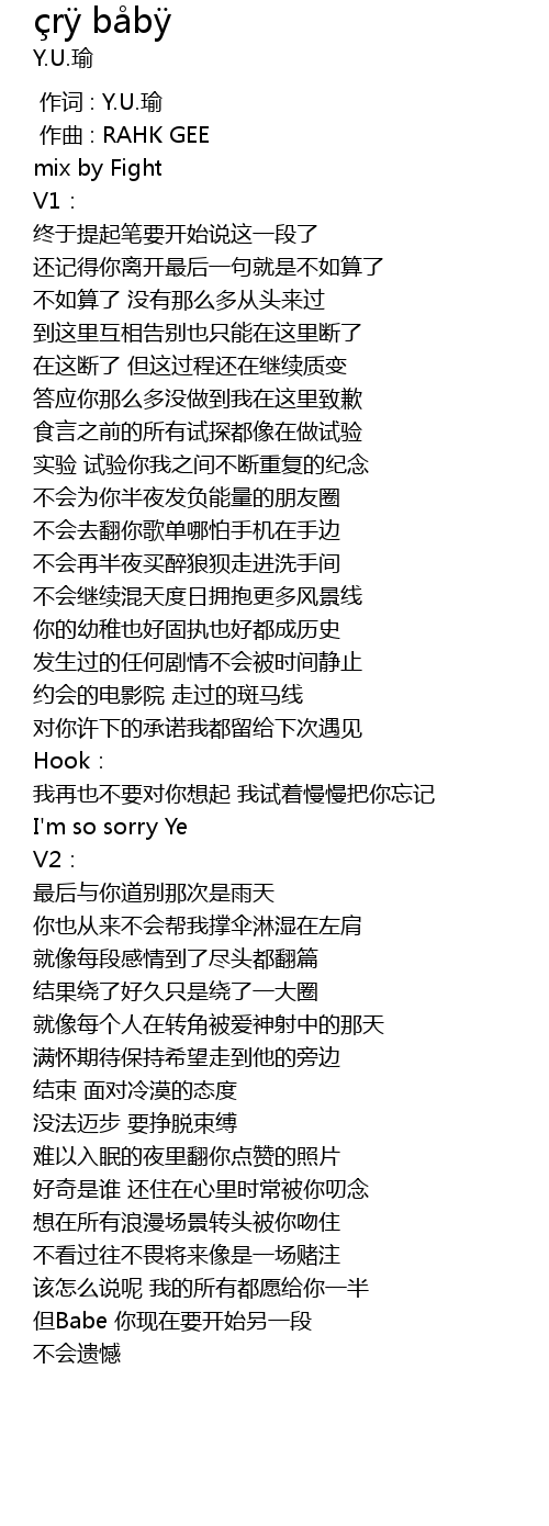 | [00:00.000] | 作词 : Y.U.瑜 |