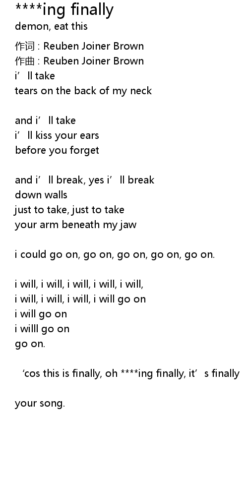 | ‘cos this is finally, oh ****ing finally, it’s finally | |