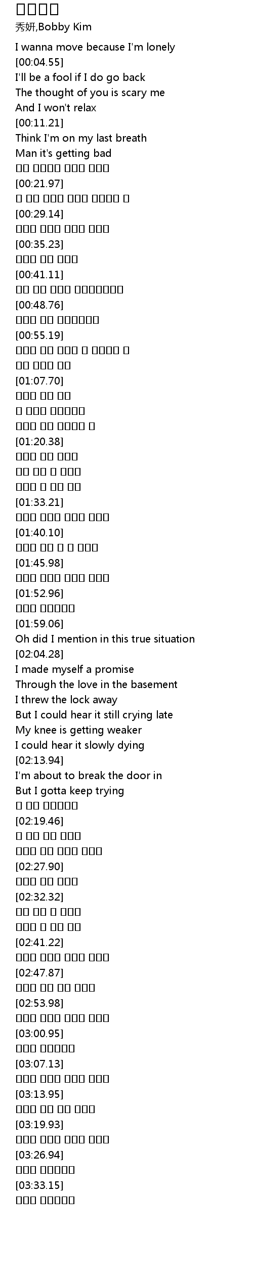 | [03:08.56] | 사랑이 끝났죠 상처가 남았죠 |