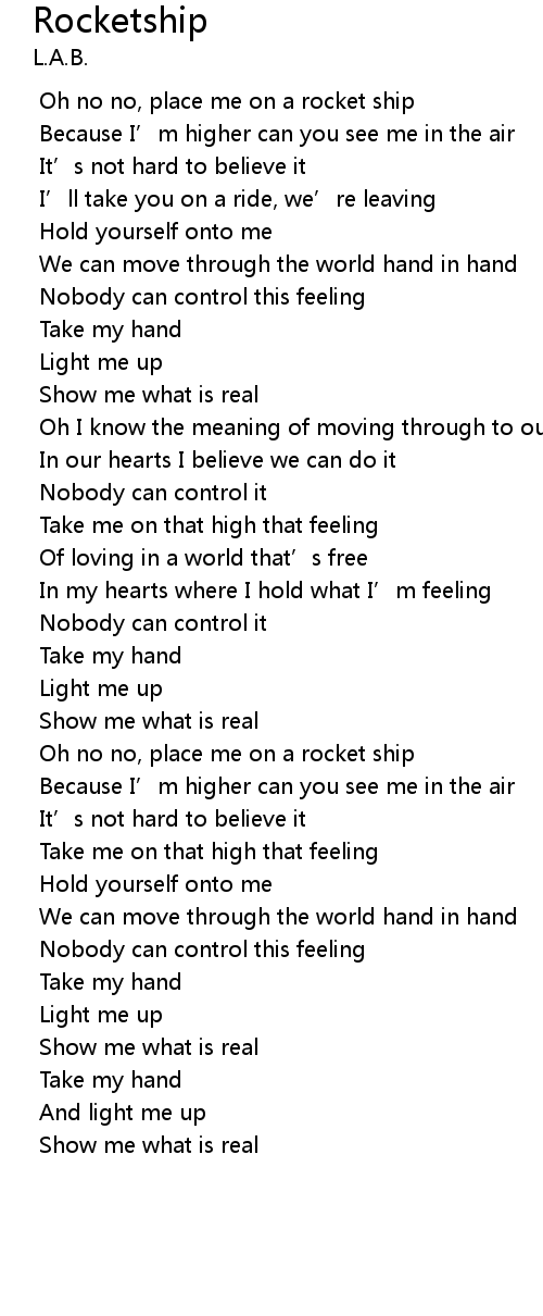 | [00:59.324] | Oh no no, place me on a rocket ship |