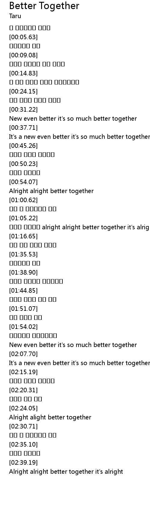 | [00:55.77] | Alright alright better together |