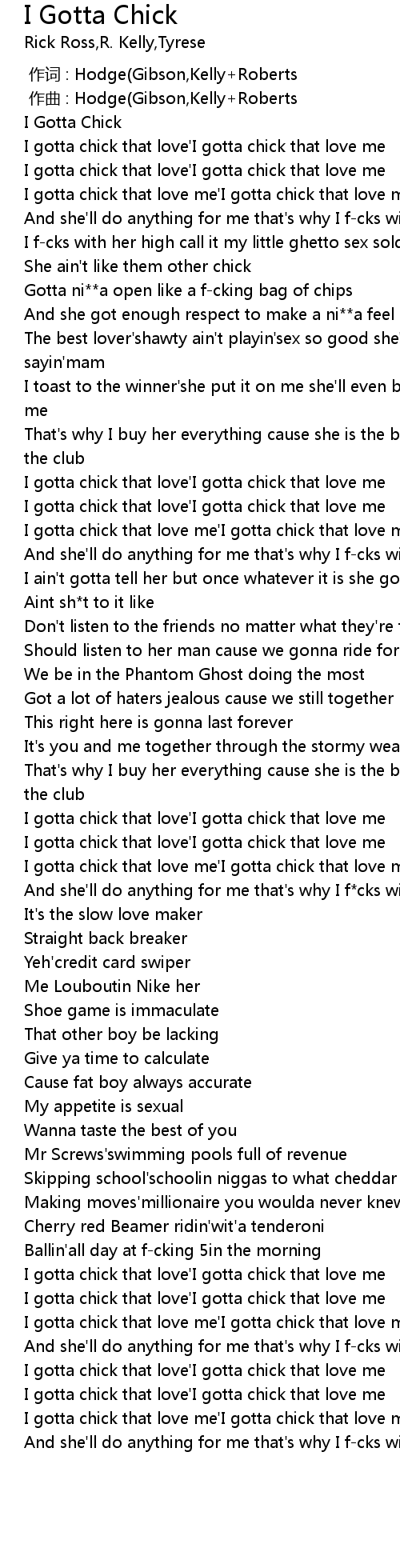| [02:23.181] | I gotta chick that love me' I gotta chick that love me |
