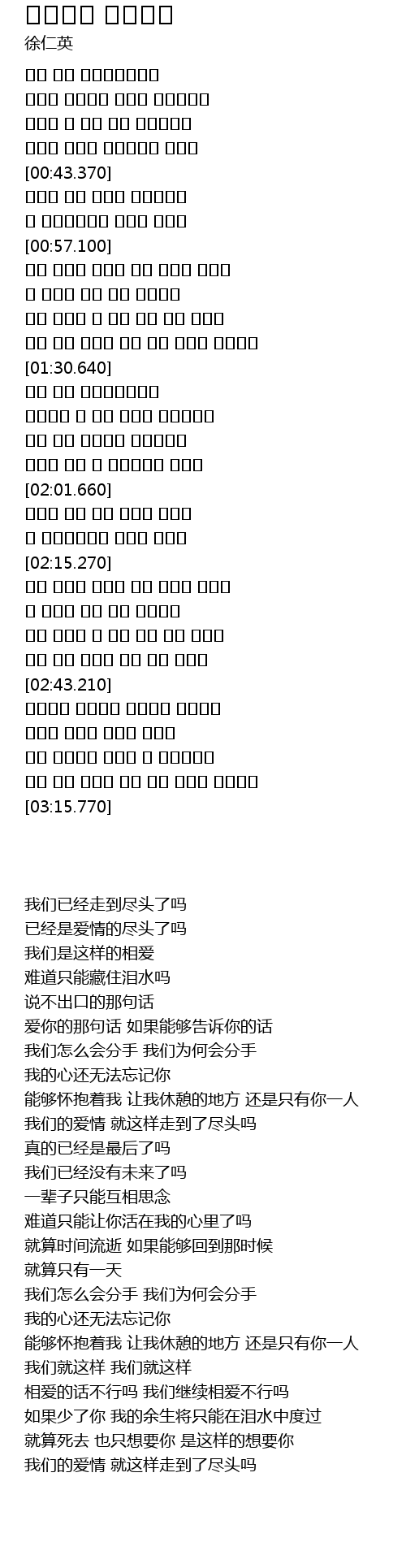 | [02:15.660] | 우리 어떻게 헤어져 우리 어떻게 헤어져 |