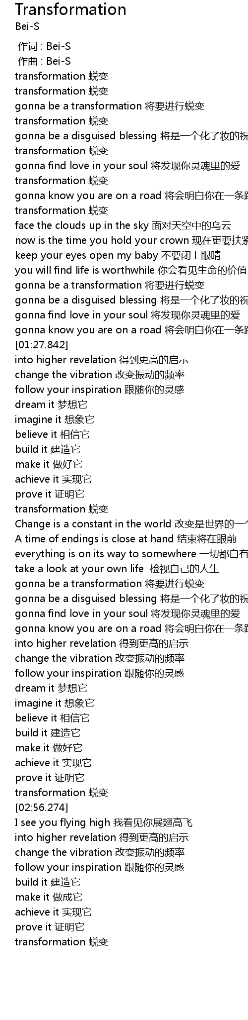 | [01:41.842] | transformation 蜕变 |