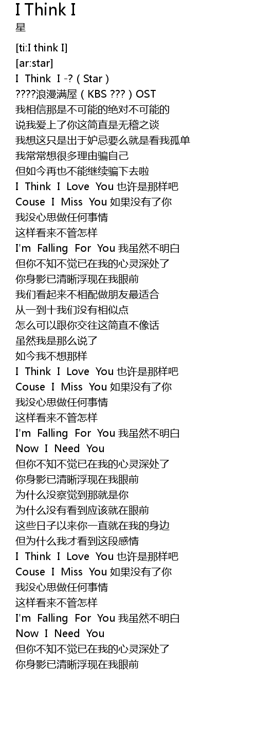 | [00:47.320] | I Think I Love You yě xǔ shì nà yàng ba |