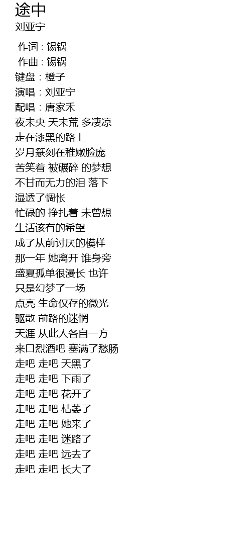 | [03:35.419] | zǒu ba zǒu ba tiān hēi le |