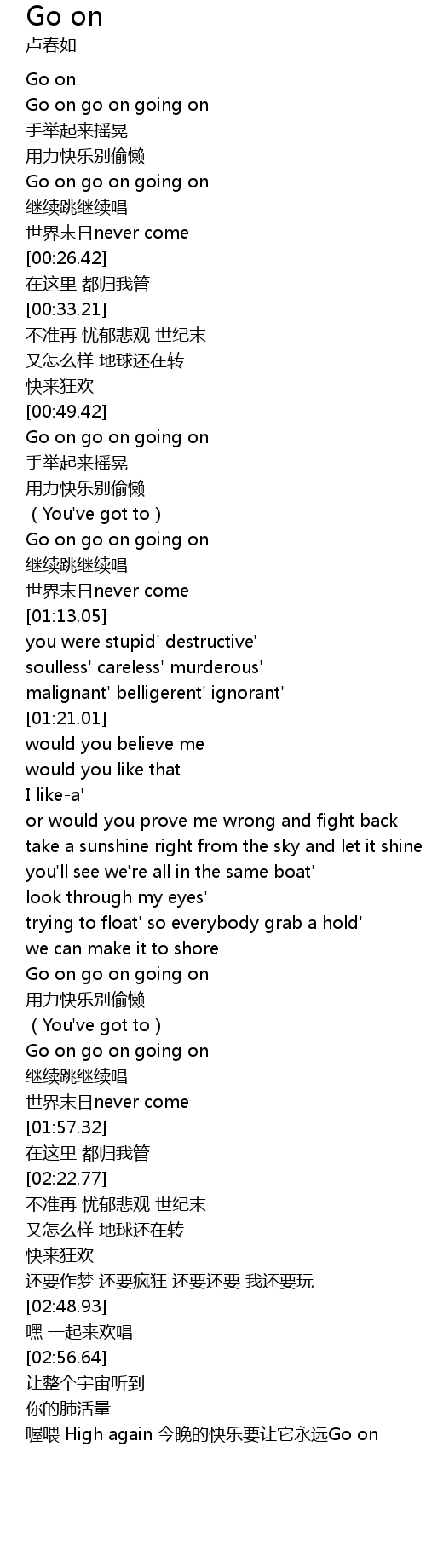 | [00:53.12] | Go on go on going on |
