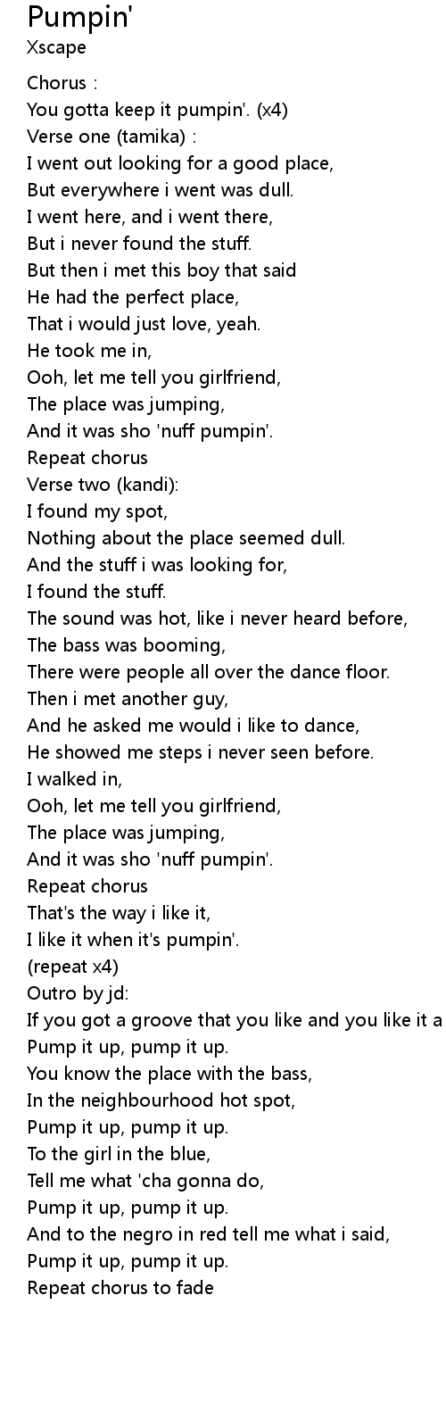 | You gotta keep it pumpin'. x4 | |