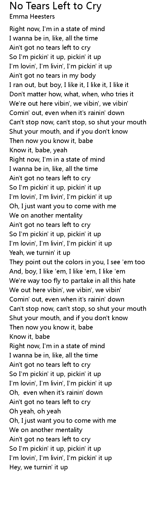 Ain't got no tears left to cry |