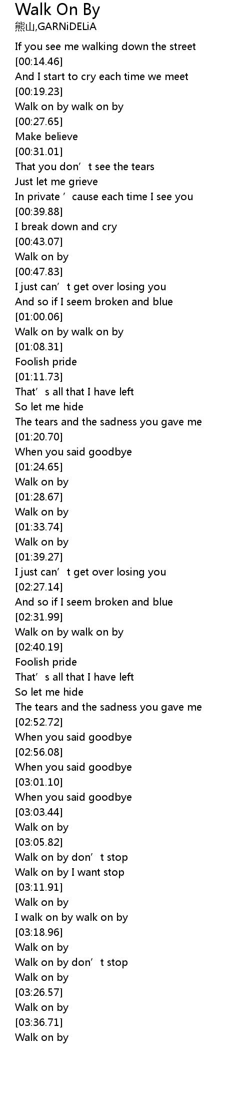 | [03:19.50] | Walk on by |