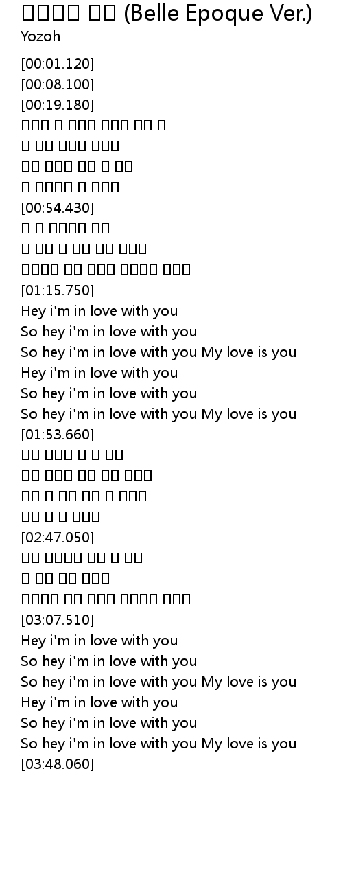 | [03:35.930] | So hey i'm in love with you My love is you |