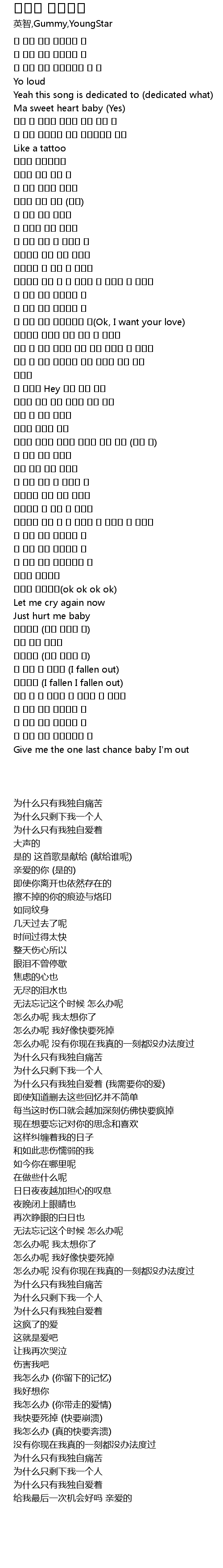 | [03:20.61] | 나 죽을 것 같은데 (I fallen out) |