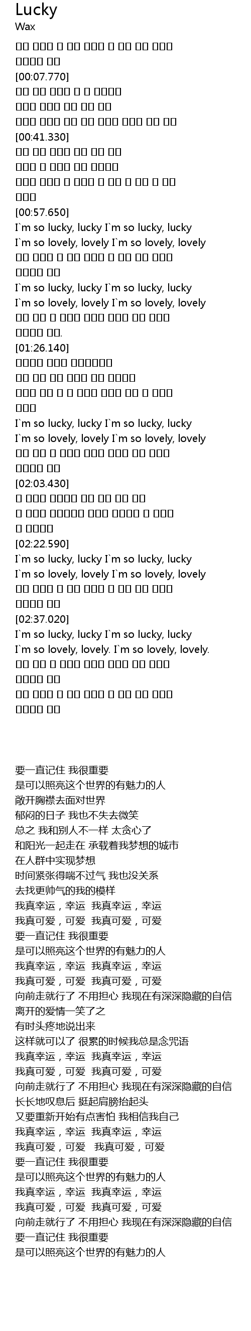 | [02:22.790] | I m so lucky, lucky I m so lucky, lucky |
