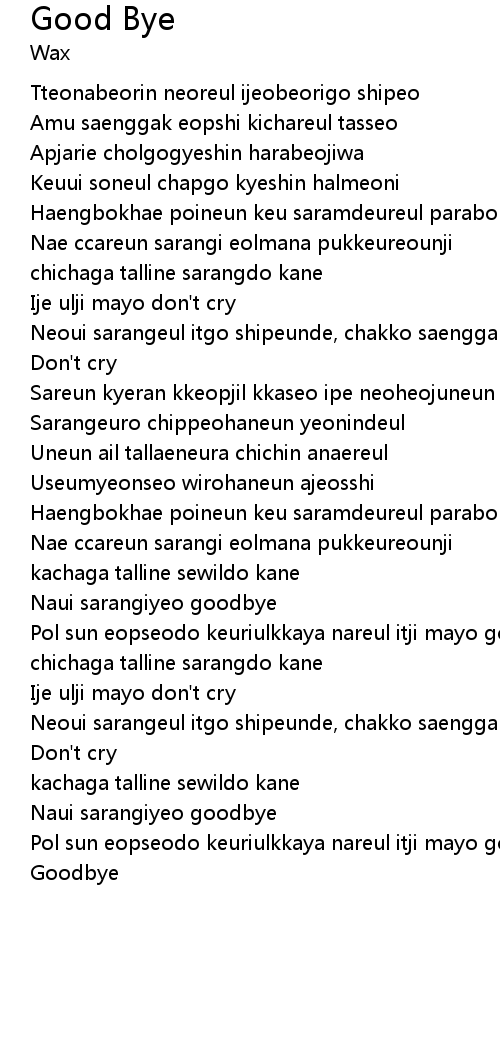 | Pol sun eopseodo keuriulkkaya nareul itji mayo goodbye | |