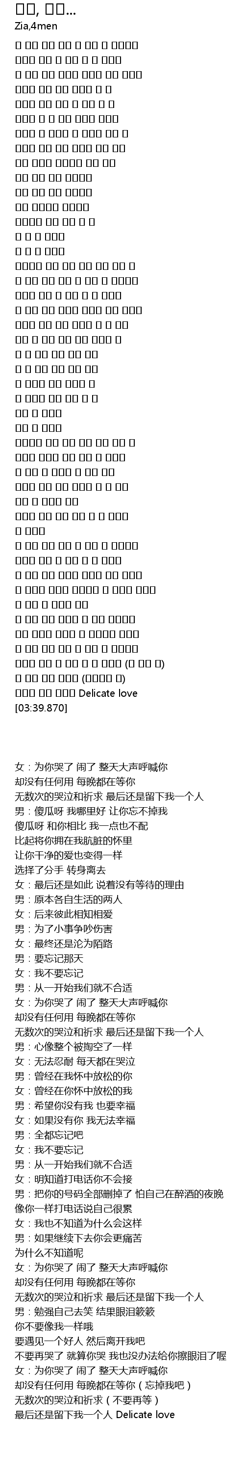 | [03:30.590] | 이렇게 나는 혼자야 Delicate love |