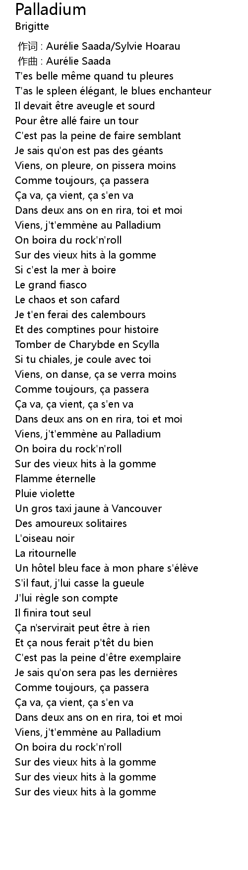 | [01:47.000] | Viens, j' t' emme ne au Palladium |
