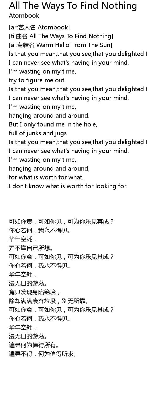| [ti:曲名 All The Ways To Find Nothing] | |