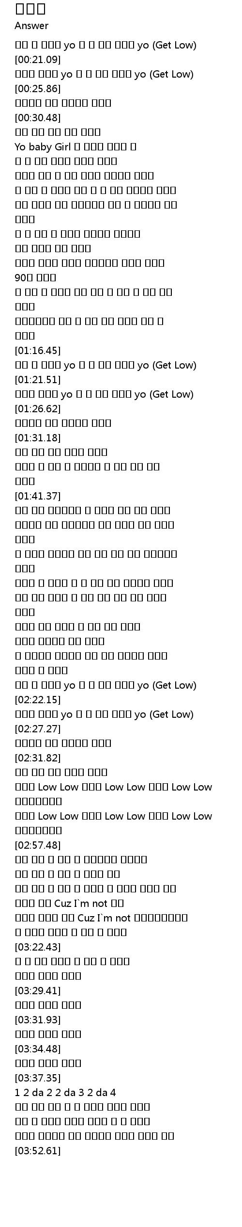간지를 안다면 yo 말 안 해도 아래로 yo (Get Low) |