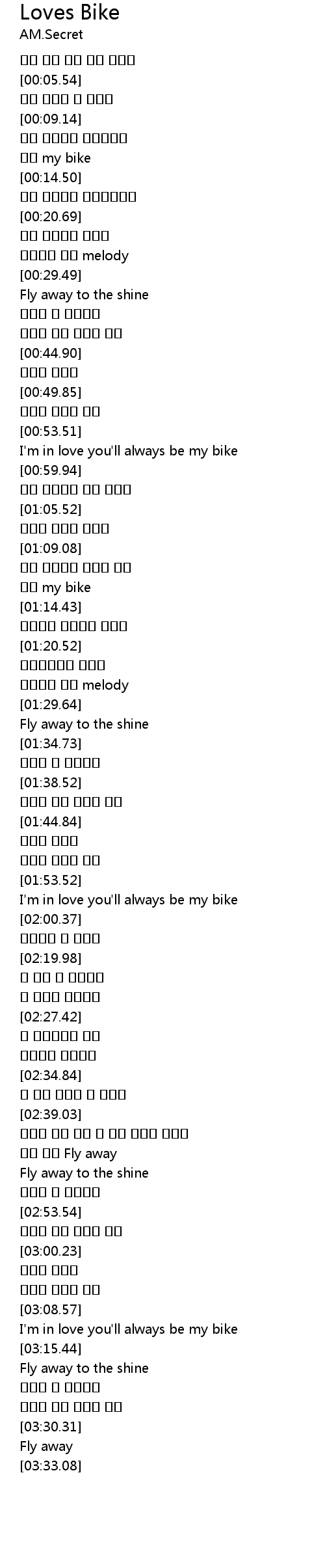 | [00:54.01] | I' m in love you' ll always be my bike |