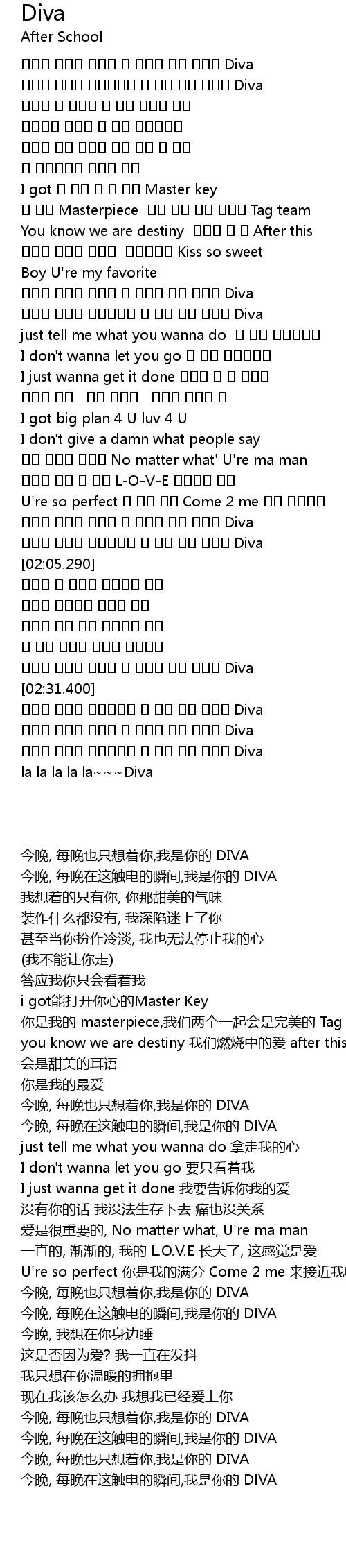 | [02:38.590] | 오늘밤 매일밤 짜릿짜릿한 이 순간 나는 그대의 Diva |