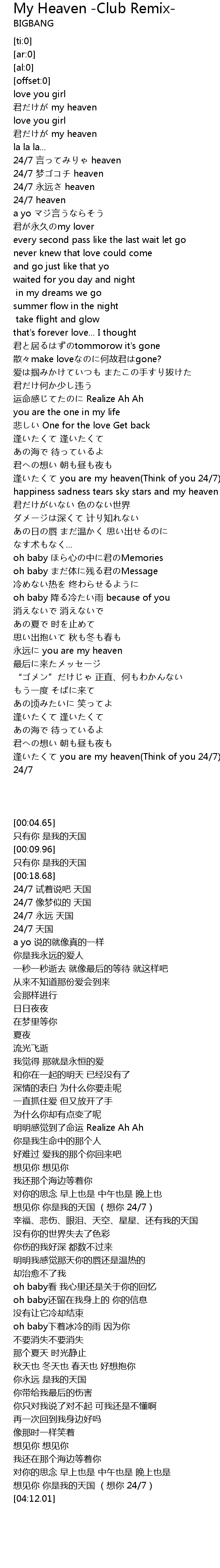 | [04:03.25] | féng you are my heaven Think of you 24 7 |