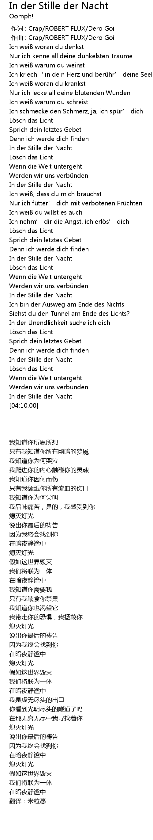 | [02:22.18] | Ich nehm’ dir die Angst, ich erlös’ dich |