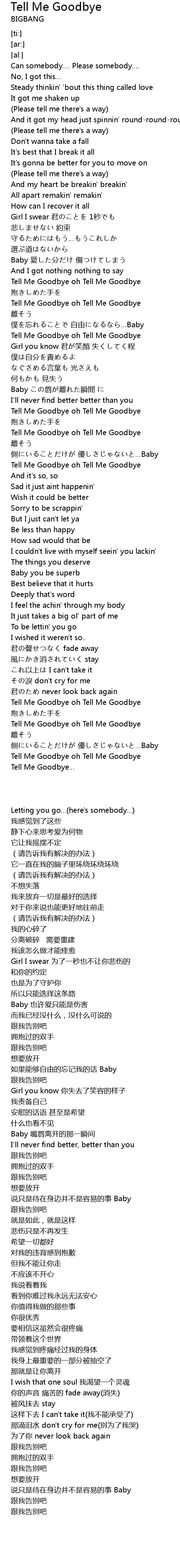 | [01:12.77] | Tell Me Goodbye oh Tell Me Goodbye |