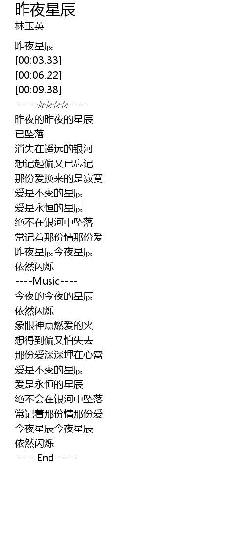 | [00:17.56] | 昨夜的昨夜的星辰 |