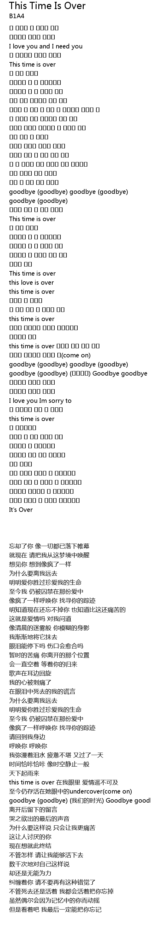 | [02:03.88] | this time is over 사랑에 나는 눈이 멀어 |