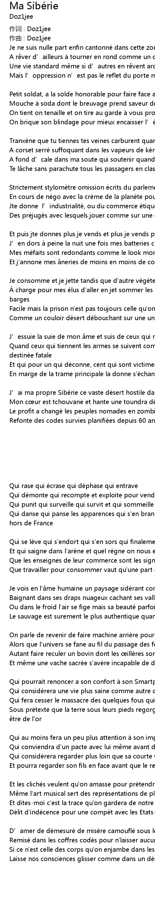 | 作词 : Doz1jee | |