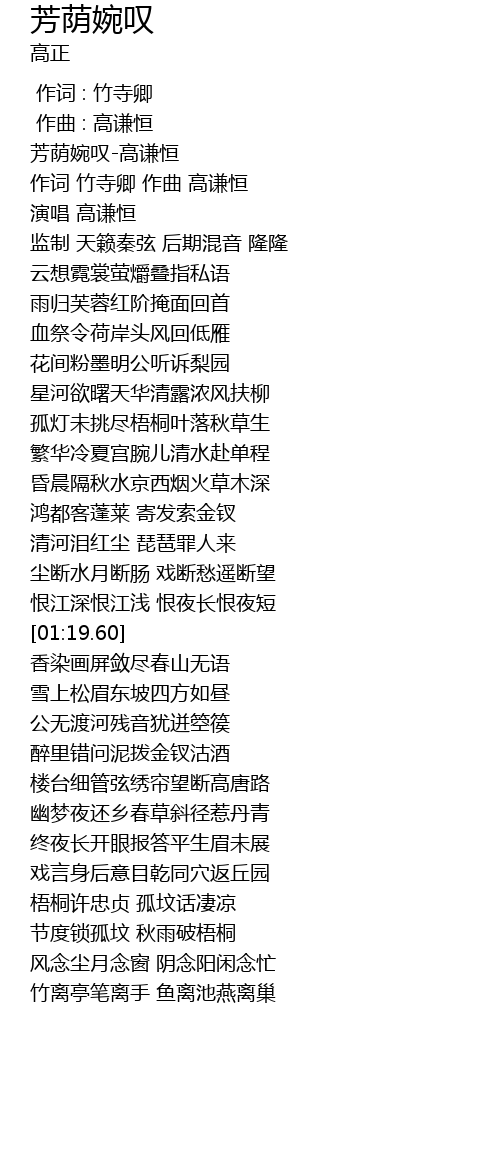 | [00:00.00] | 芳荫婉叹-高谦恒 |
