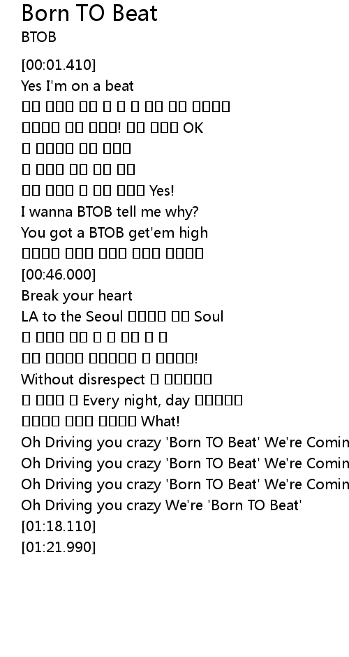 | [01:10.520] | Oh Driving you crazy ' Born TO Beat' We' re Coming |