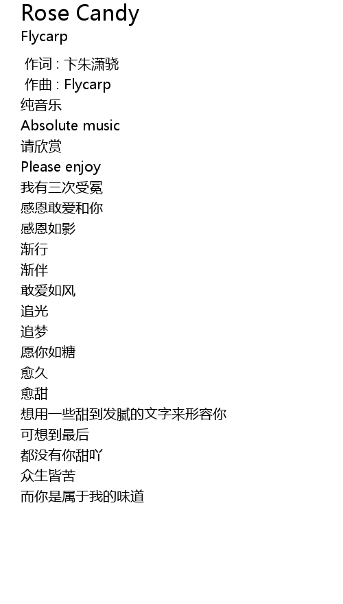 | [00:01.000] | zuò qǔ : Flycarp |