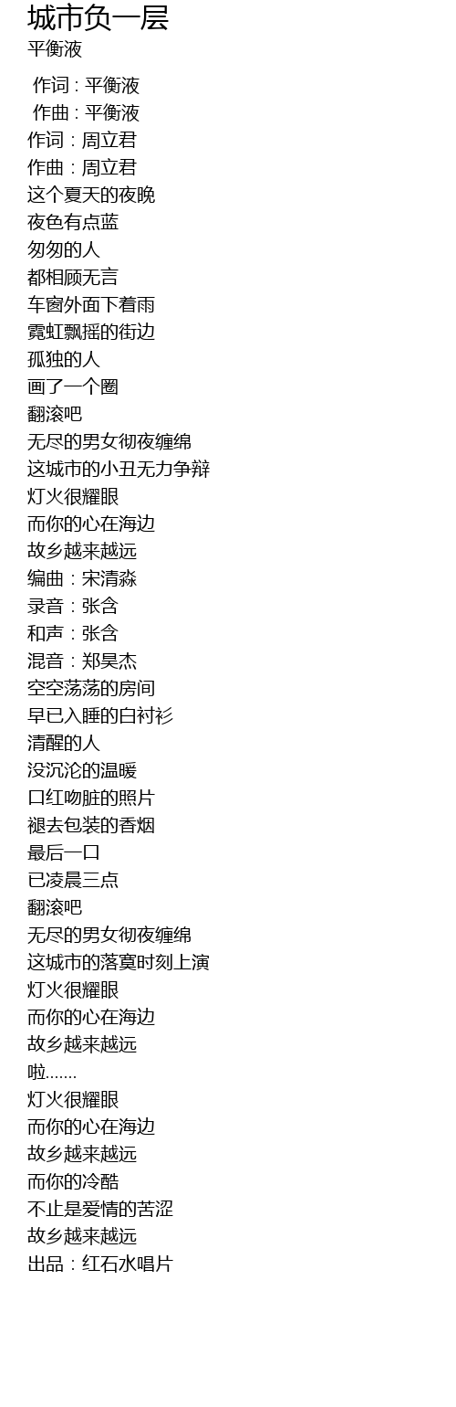 | [00:01.000] | zuò qǔ : píng héng yè |
