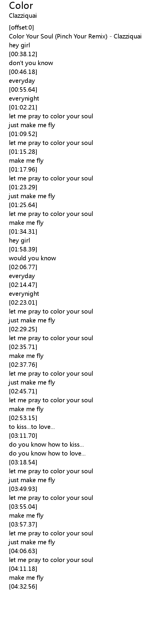 [00:17.34] Color Your Soul (Pinch Your Remix) - Clazziquai