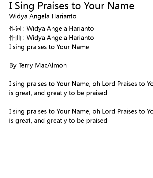 | I sing praises to Your Name, oh Lord Praises to Your Name, oh Lord For Your Name is great, and greatly to be praised |