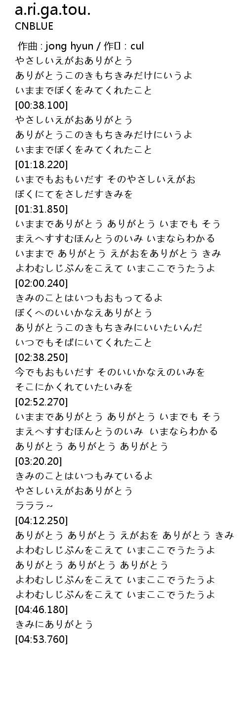 | [04:26.120] | ありがとう ありがとう ありがとう |