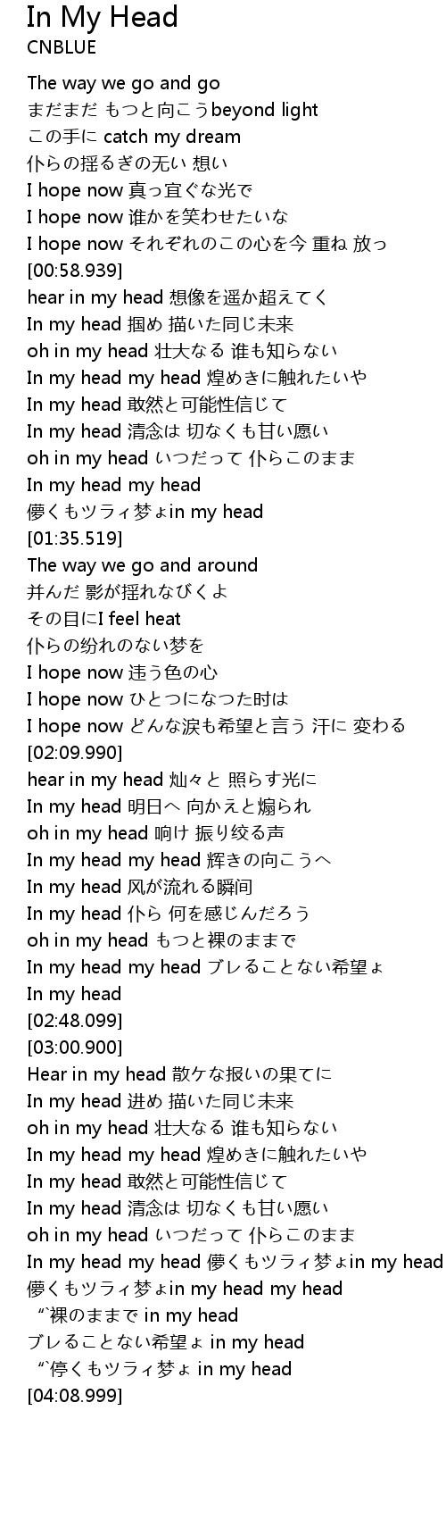 | [02:40.599] | In my head my head ブレることない希望ょ |