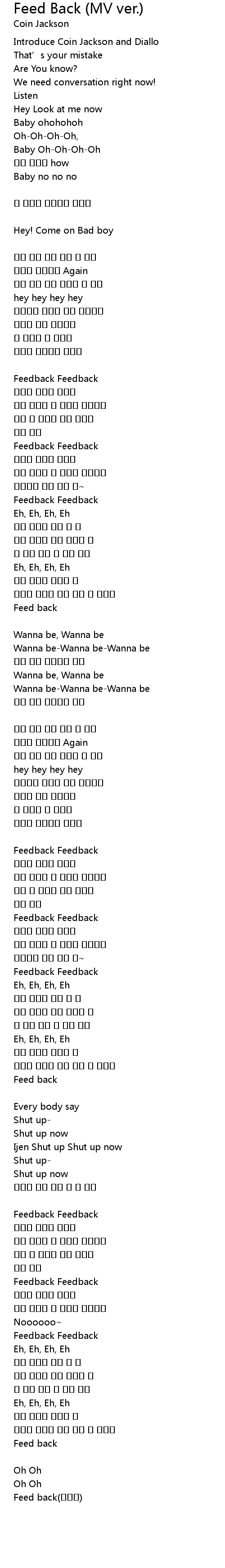| Song | Feed Back (MV ver.) |