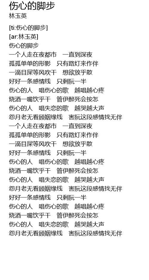 | [03:14.913] | shāng xīn de rén chàng shāng xīn de gē yuè chàng yuè xīn téng |
